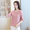 商品名称:TPshop 优洛莎 2018夏季新款时尚百搭蕾丝镂空针织拼接显瘦上衣P4717