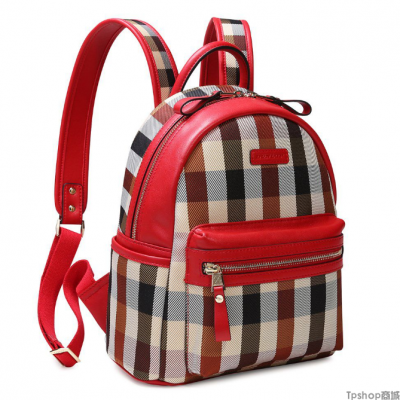 商品名称:TPshop 新款桔杏格配红色头层牛皮百搭双肩包