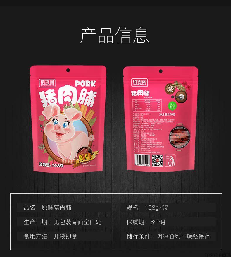 商品名称:TPshop 【满300减210】俏香阁 肉干肉脯 休闲零食 小吃 靖江特产 猪肉脯 熟食小吃 牛肉干 原味猪肉脯3袋