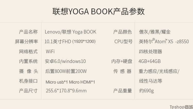 商品名称:TPshop Lenovo/联想 Yoga BOOK安卓win10手写绘图超薄笔记本平板电脑10寸
