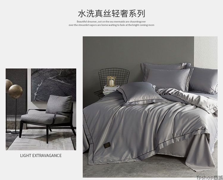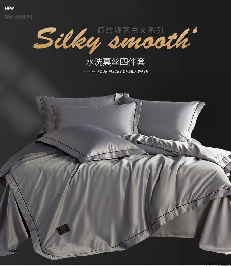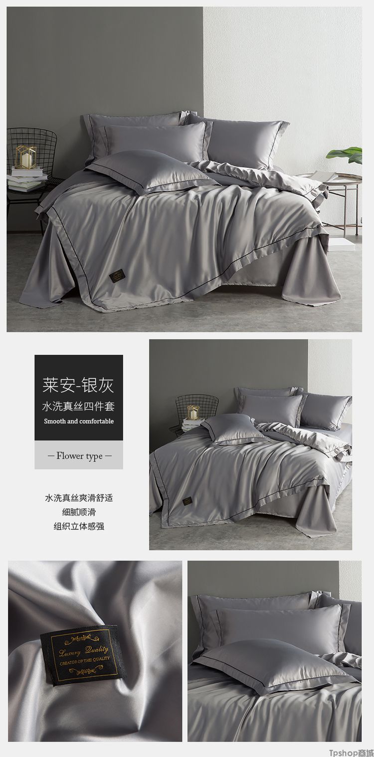 商品名称:TPshop 夏季冰丝四件套欧式真丝床单丝滑裸睡天丝绸被套夏凉床上用品床笠