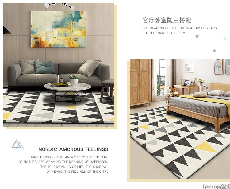 商品名称:TPshop 地毯客厅卧室满铺床边毯茶几地毯垫简约现代北欧风长方形欧式ins