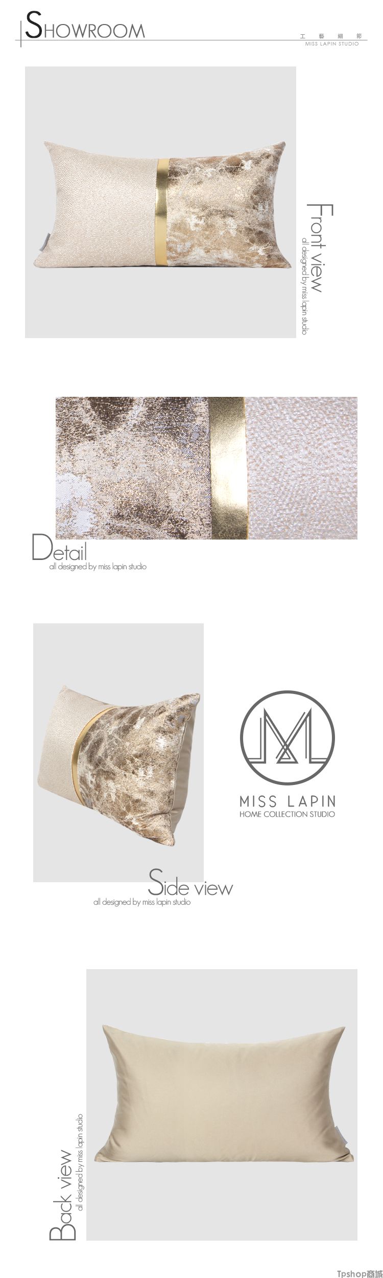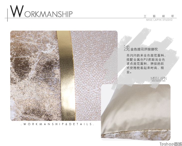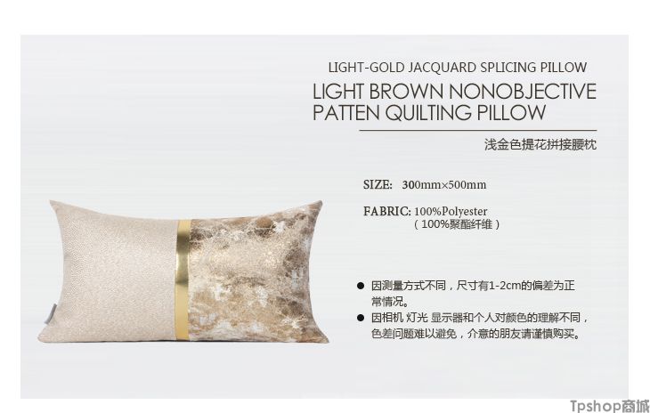 商品名称:TPshop 澜品家居简约现代北欧/样板房靠包抱枕靠垫/浅金色提花拼接腰枕