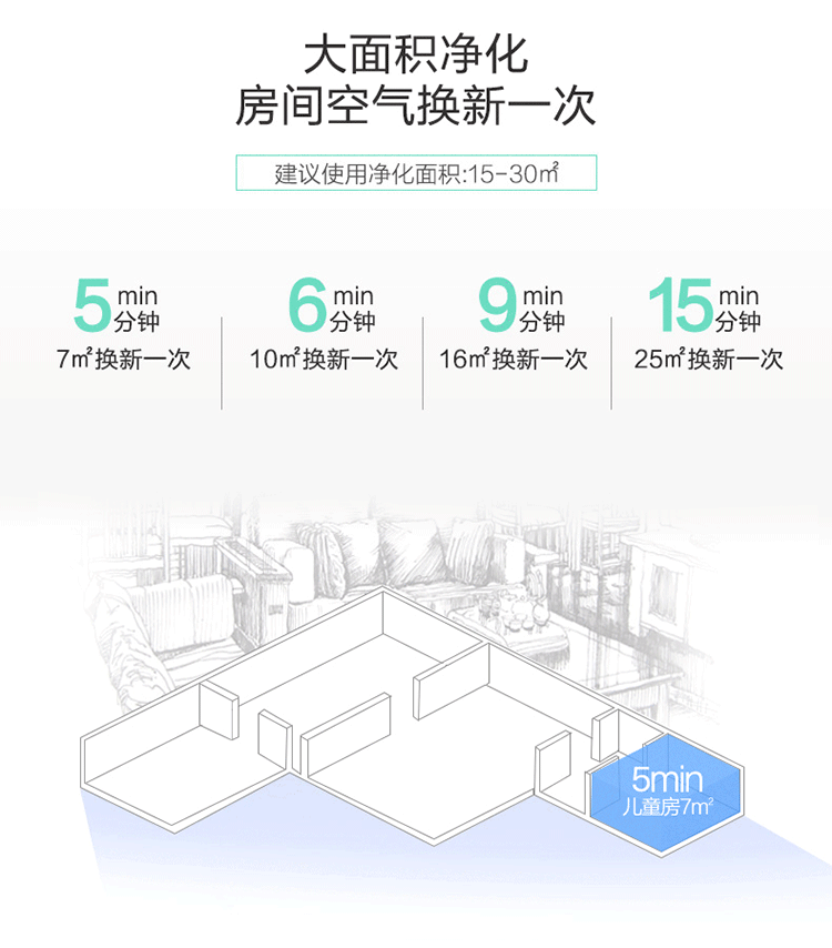 • 空气净化能效等级: :合格级