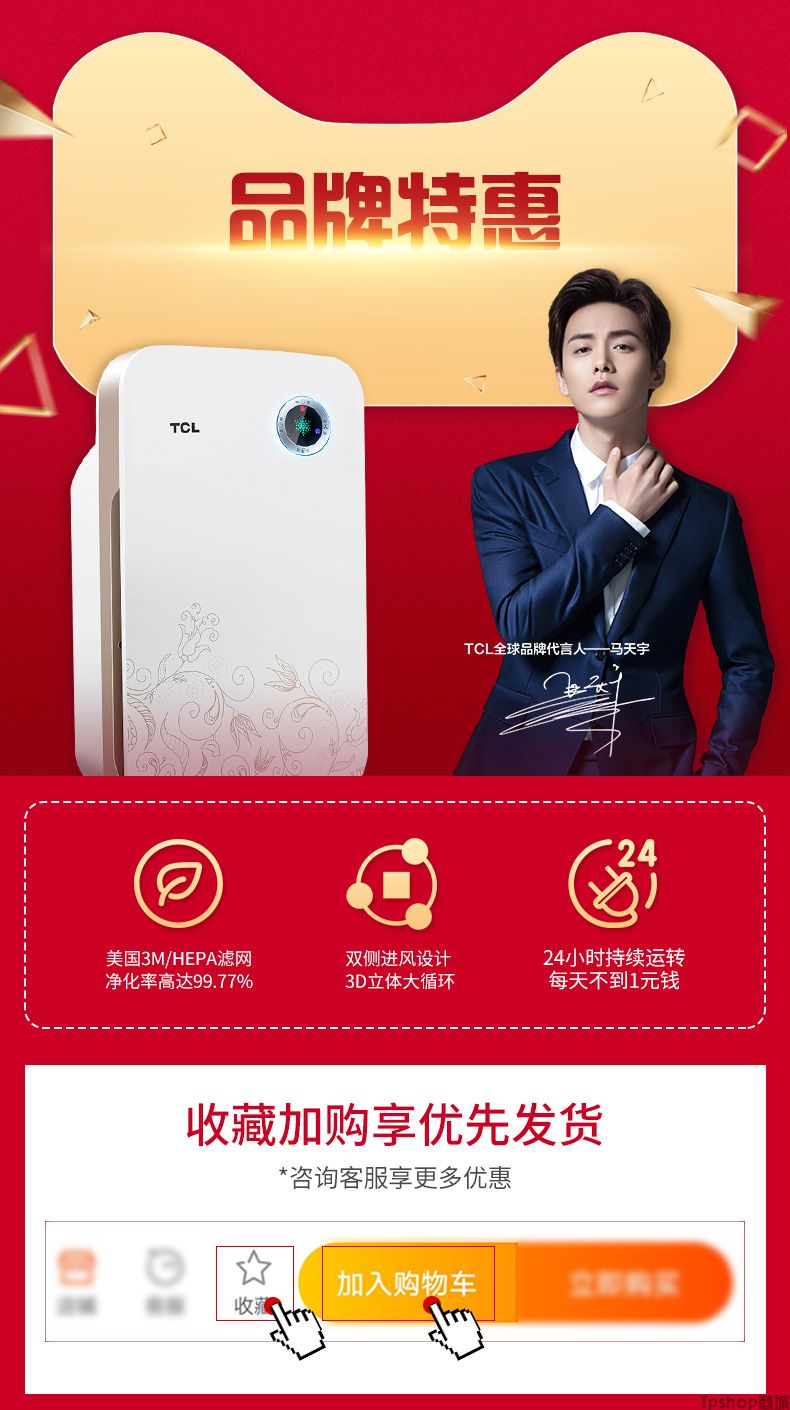 TPshop TCL空气净化器家用除甲醛雾霾PM2.5卧室除二手烟粉尘除异味负离子