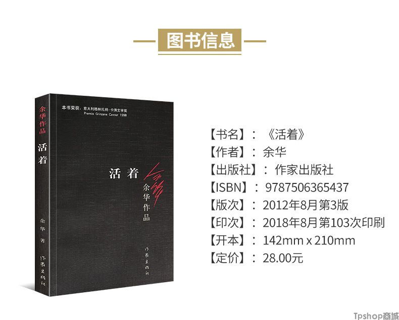 商品名称:TPshop 活着 余华 正版余华作品集 原著文学书籍畅销书活者 易烊千玺推荐的书 好书推荐好看的经典长篇现代/当代小说