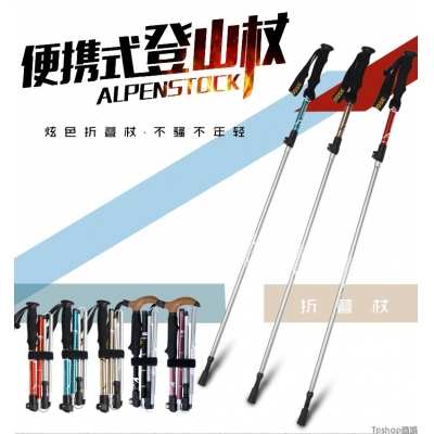 商品名称:TPshop 匡途超轻超短折叠登山杖伸缩直柄外锁手杖徒步爬山装备拐杖棍户外