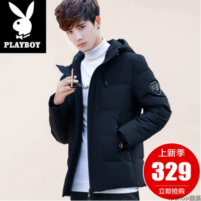 TPshop 花花公子羽绒服男2017秋冬新品男士加厚休闲修身青年轻薄短款连帽外套男装