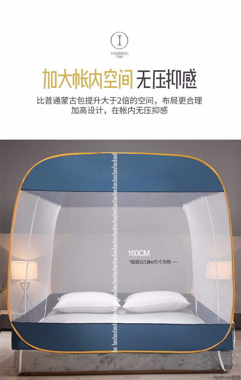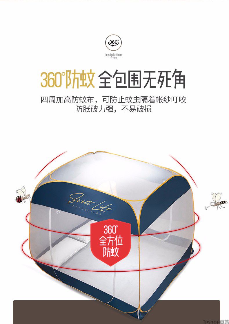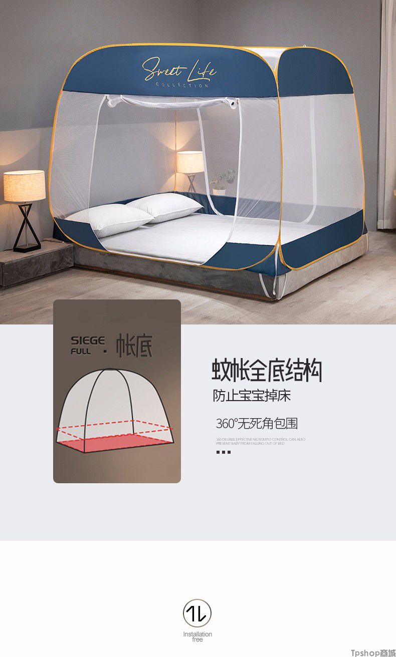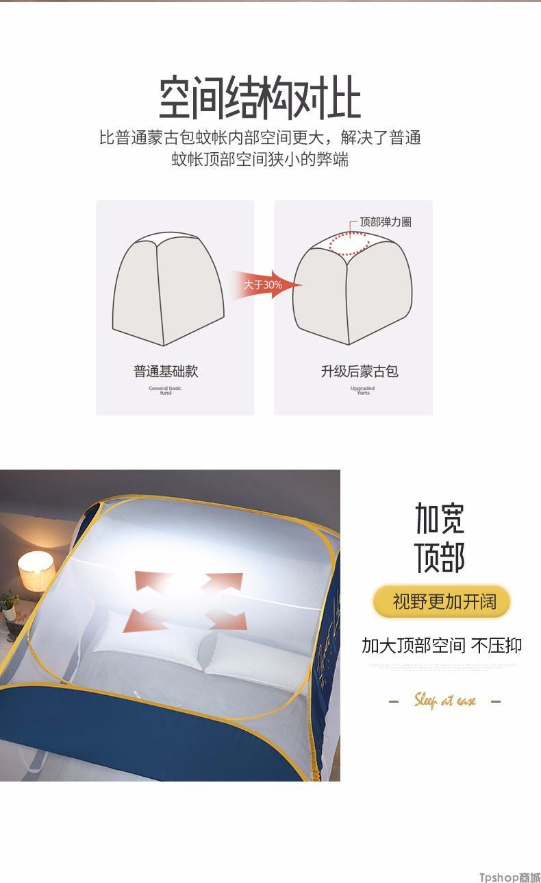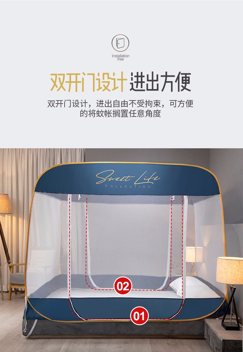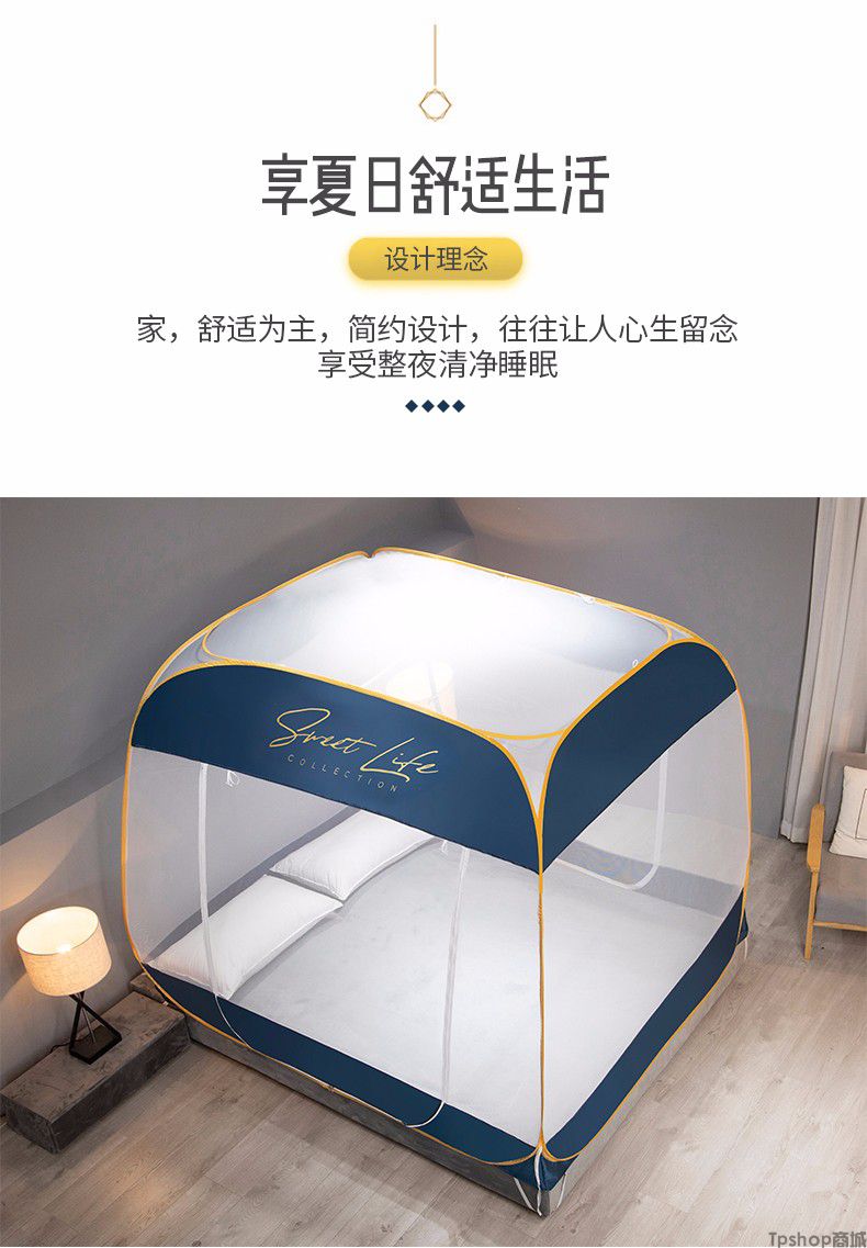 商品名称:TPshop [正常发货]南极人家纺蚊帐免安装钢丝蒙古包纹帐多开门可折叠拉链帐子大方顶防蚊1.5m 1.8m 小时代-月光蓝