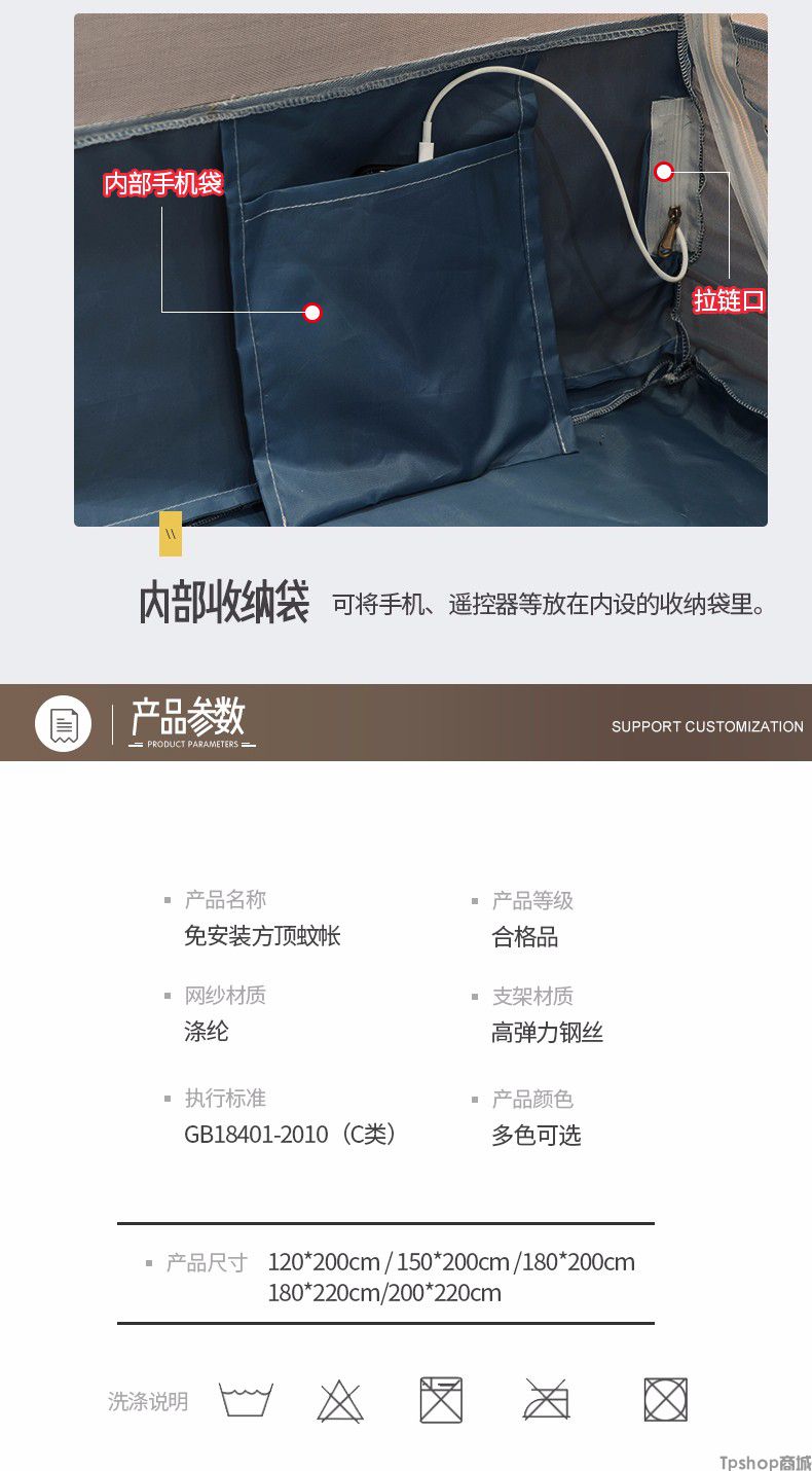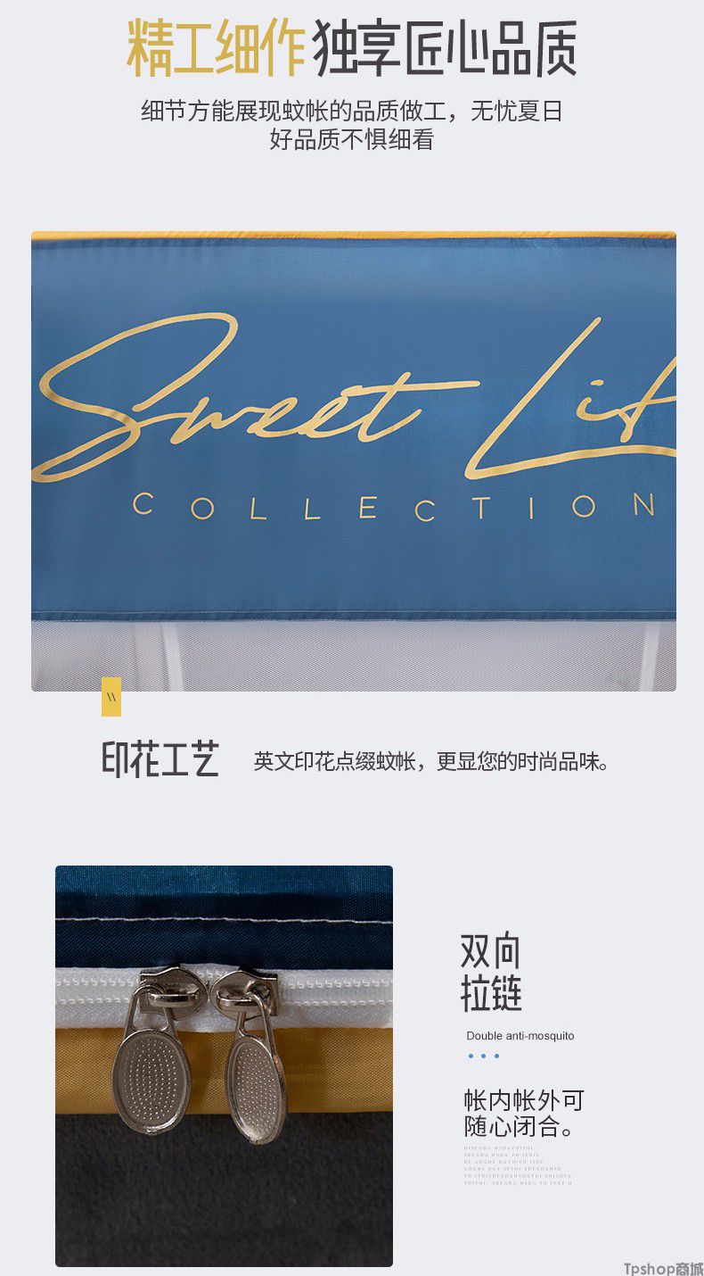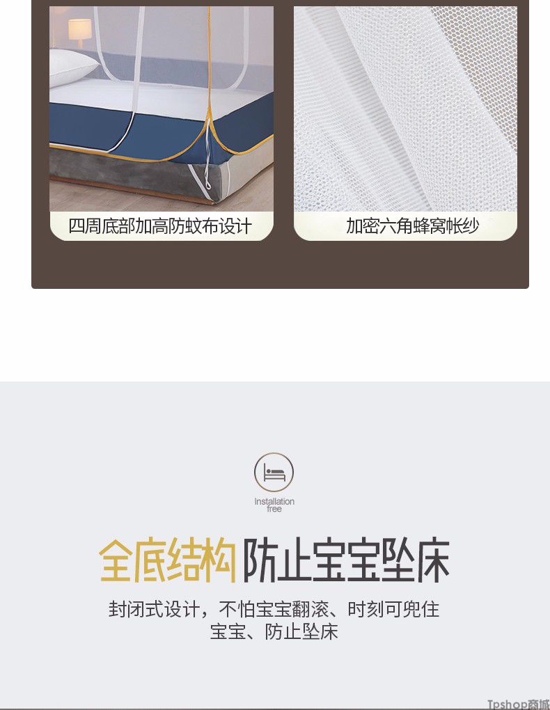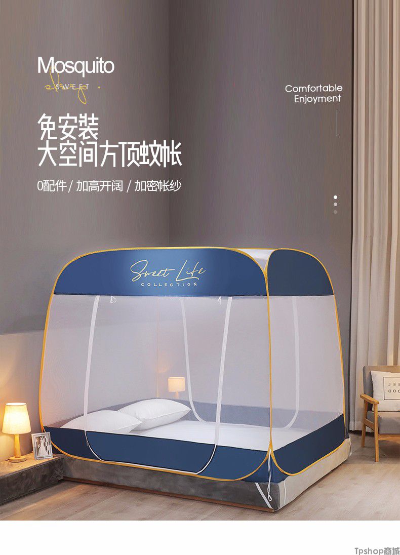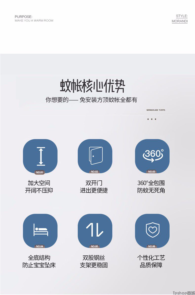 商品名称:TPshop [正常发货]南极人家纺蚊帐免安装钢丝蒙古包纹帐多开门可折叠拉链帐子大方顶防蚊1.5m 1.8m 小时代-月光蓝