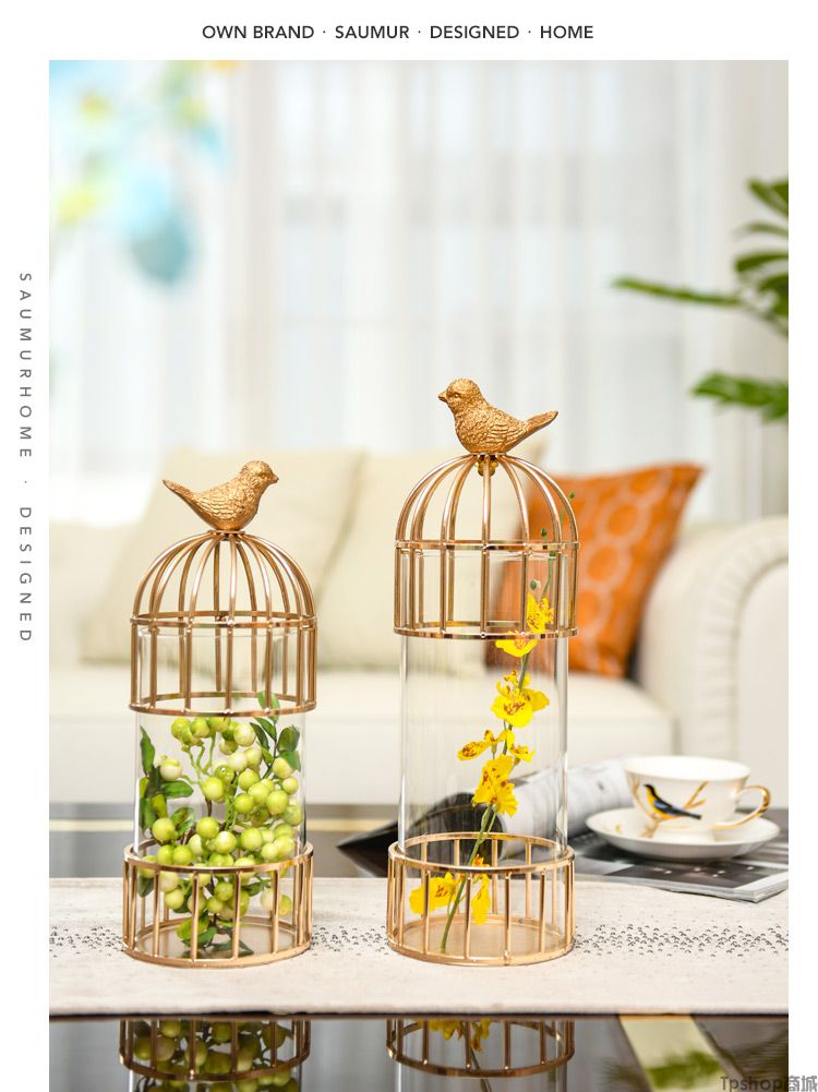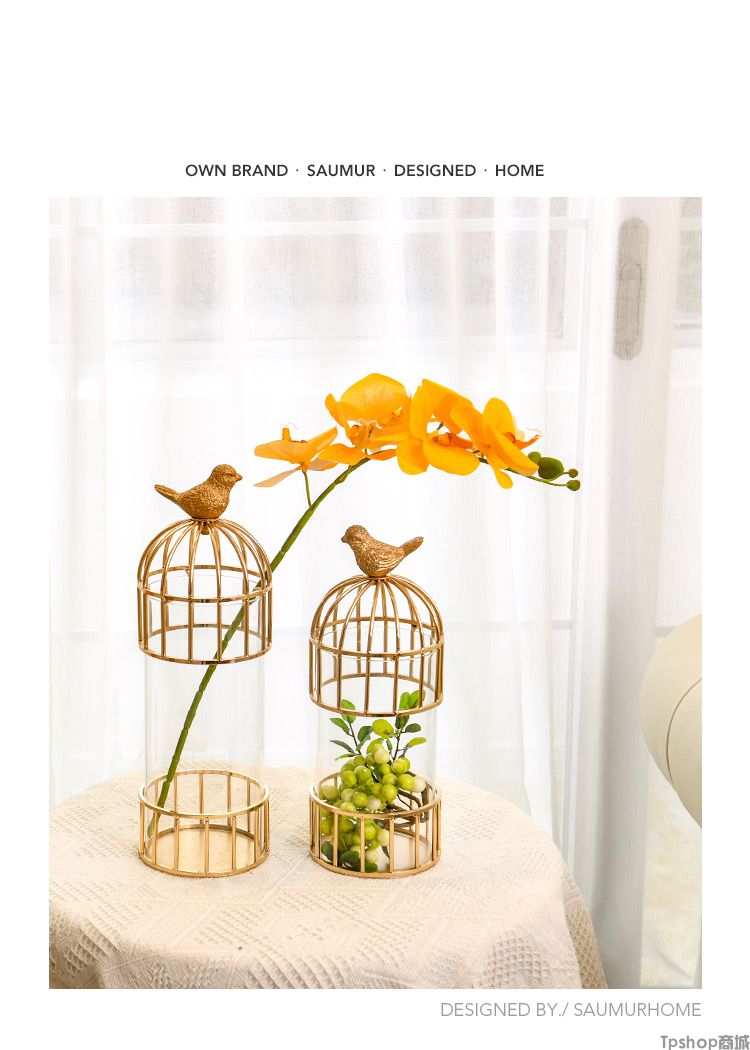 TPshop SAUMUR鸟笼软装饰品黄铜金属简欧式家居客厅轻奢美式样板房间摆件